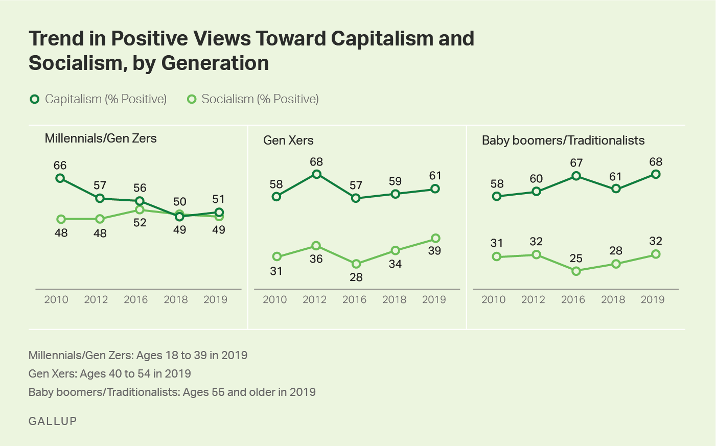Anti-capitalistic and anti-government sentiment has been rising rapidly since the Financial Crisis. Political division, also rising rapidly, seems to be less about policy or value arguments but is more related to intensifying views on the very core ideologies western democracy is built on.