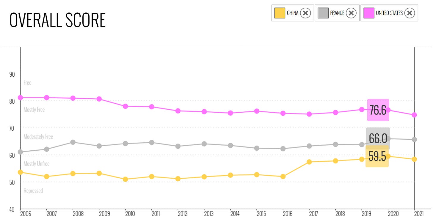 The Heritage Foundation Index of Economic Freedom takes into account more factors than just the size of government, even though this is an important input.