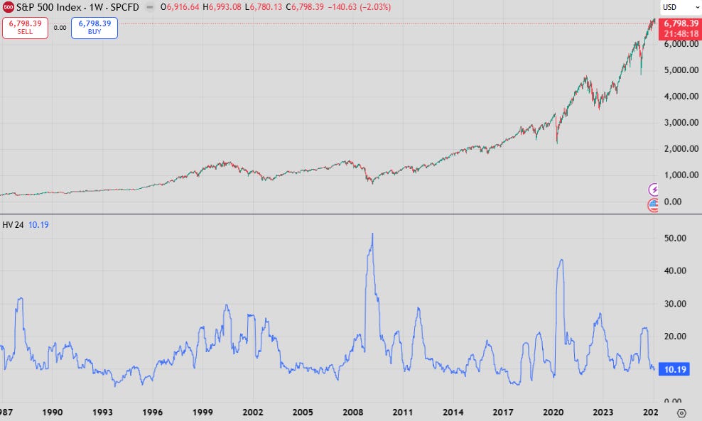 What’s going on? Why do we read of panicking about Fed independence in deciding terminal rates, yet markets continue to print lower and lower vol?