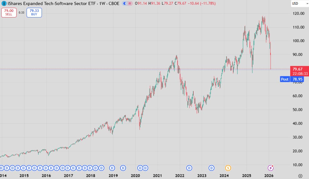 Volatile rotation has the ability to also make managers nervous and cause persistently higher implied vol. On top of this is the exposure of the jumbo private credit funds to software, of which some have exposure of 20%.