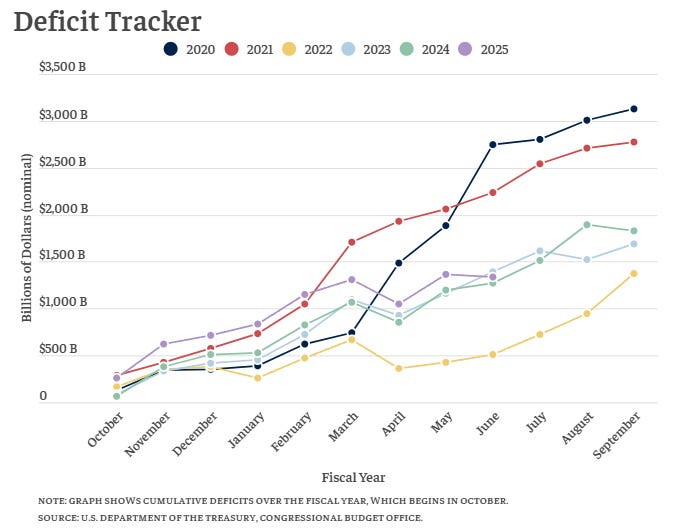 …despite the decent uptick over 2024. Tariffs seem to be causing this cumulative deficit to converge with 2024, however.