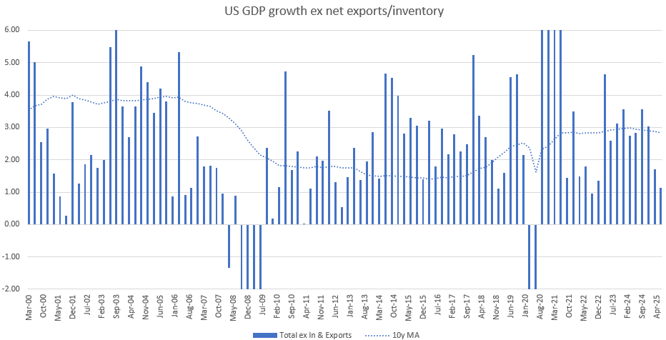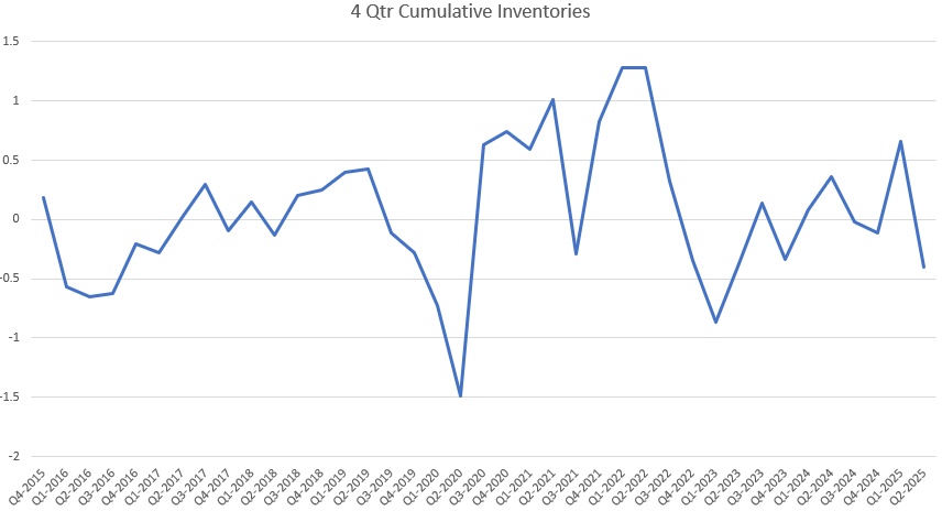 The extreme moves in net exports has been met with opposite moves in inventories as tariffs were front-run and then reversed.