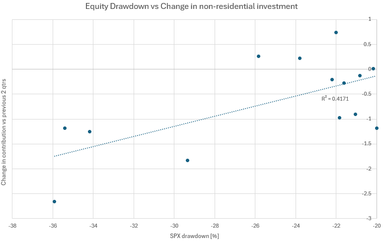 The S&P500 had a 22% range over Q2. The bigger the drawdown, the worse the fall in contribution from non-residential investment.