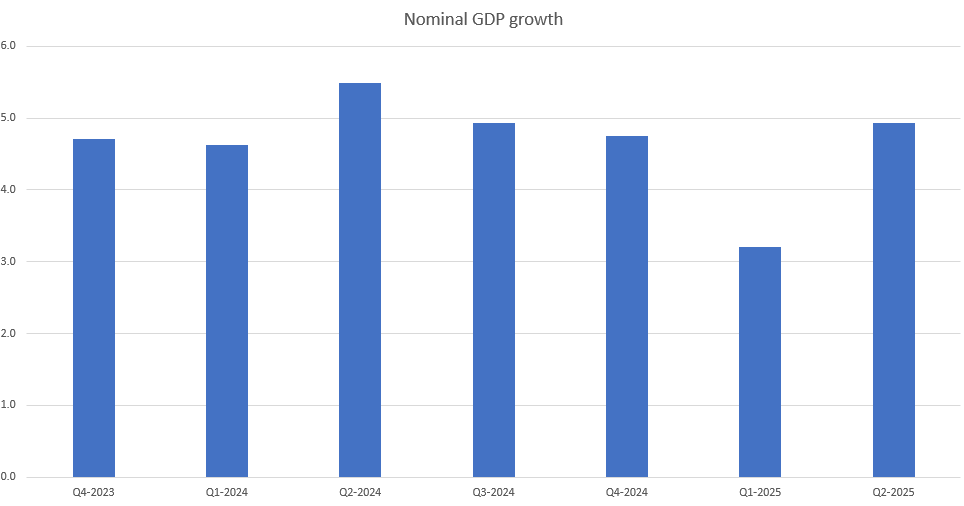 Headline nominal GDP growth picked back up again towards 5% after a drop in Q1.