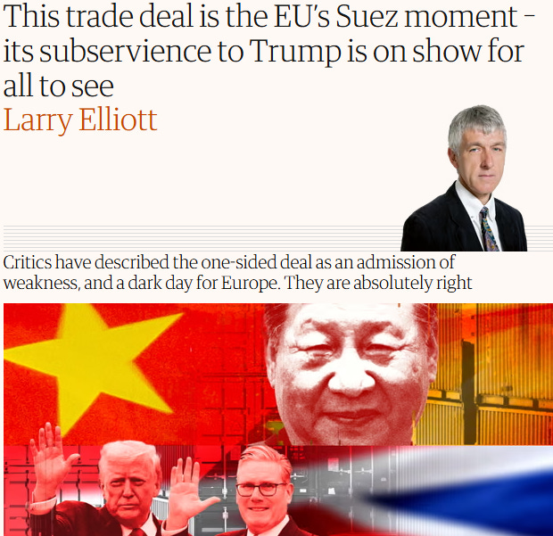 Plenty of pearl clutching over the European deal with the US, where Europe appeared to agree to a 15% tariff and US LNG buying in return for seemingly little back.