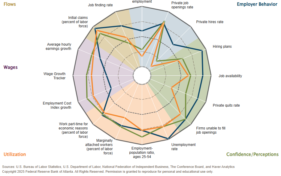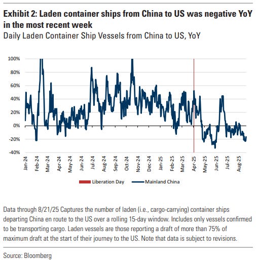Trade is showing some moderation through container ship data. This all lines up with the debt dynamics suggesting that we are in a slower growth patch until tariff collection stops growing. Real GDP growth of 1-2% is consistent with this.