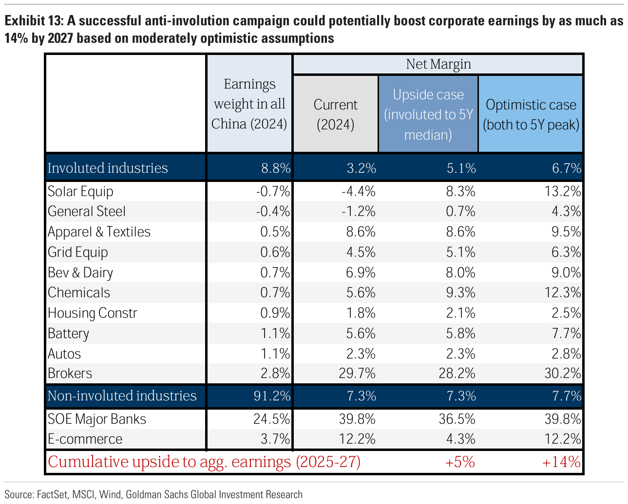 While more than a week old now, Goldmans did a good piece on the anti-involution drive, with their summary of the forecast earnings effect above.
