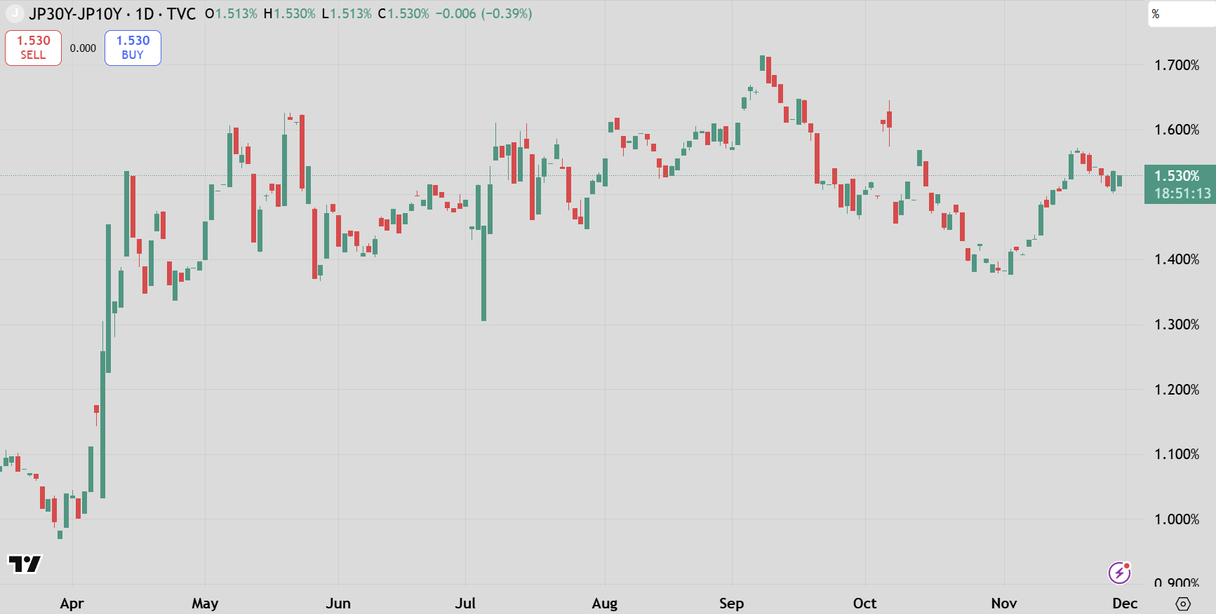 Really enjoyed your thoughts on longer-end JGBs. I dunno if you follow the BoJ speakers, but they have flip flopped on Dec hike almost inversely with the Fed Dec cut premiums picking up this week. Today's Tokyo CPI ought to reinforce some hawkishness for BoJ.