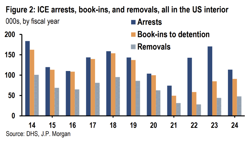 JPM put together a piece on how deportations of illegals are progressing in the US.