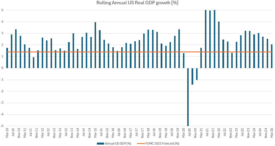 A forecast of 1.4% is worse than nearly all the annual real GDP growth prints for the US since the GFC, excluding the pandemic.