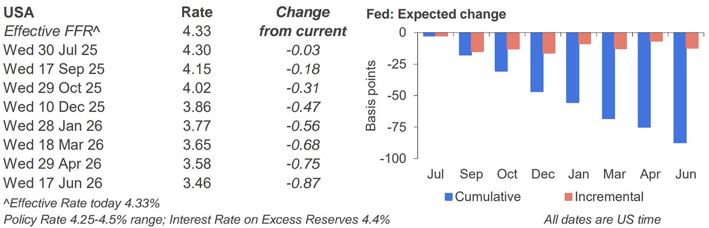 My view is that this is nothing but procrastination and defence against Trump’s accusations towards “too late” Powell along with a Fed that pretends to but doesn’t care about growth risks. They are still tormented by risks to inflation. If they believed their growth forecasts, they would be cutting now. But they don’t.