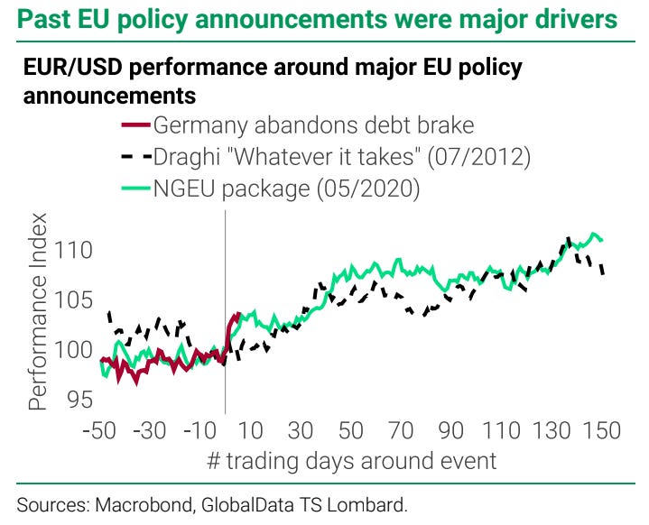 Interesting chart here about the response of the Euro after large announcements. It certainly was as depressed heading into to it from those other episodes.