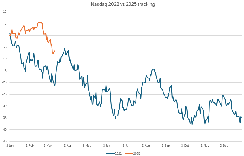 This drawdown is about the same size as the end of 2023, just playing out much faster than it did then.