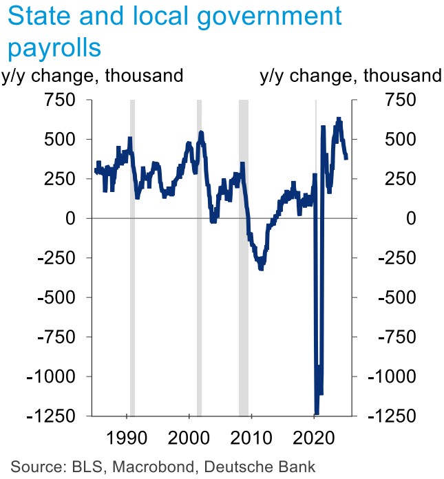 Federal payrolls down 10k on DOGE effect; but state is more than picking up the slack.