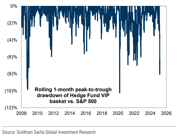 The speed of the correction has meant that the multi-strat “pod” style funds have had to reduce risk aggressively because they all use basically the same rules for risk reduction (2.5% drawdown = half risk, 5% you’re lucky to keep your job).