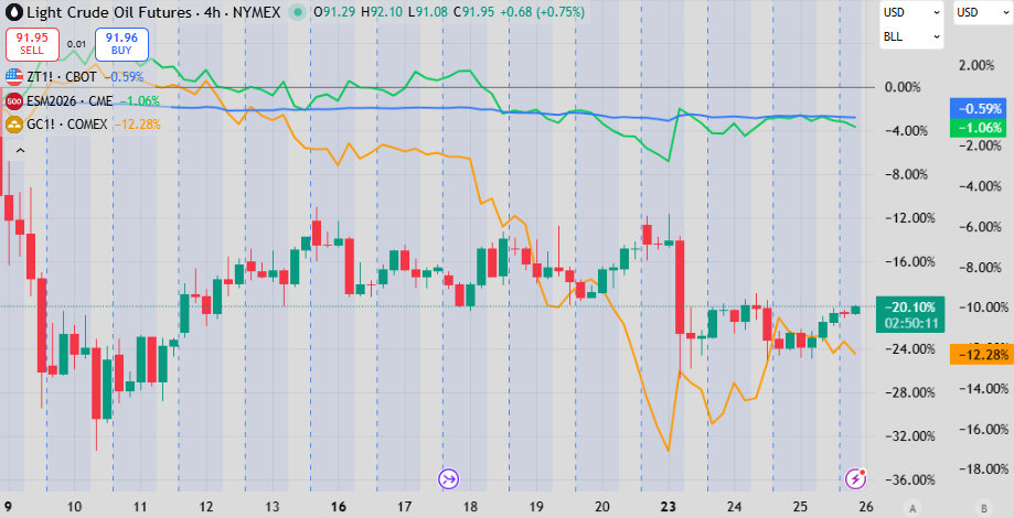 With the move of oil to below $90/bbl this puts basically every single macro asset in drawdown since it peaked. Equities in some places might be flat (Europe), but bonds are definitely down along with gold and most other commodities. This is after the Trump “we’re negotiating!” post.