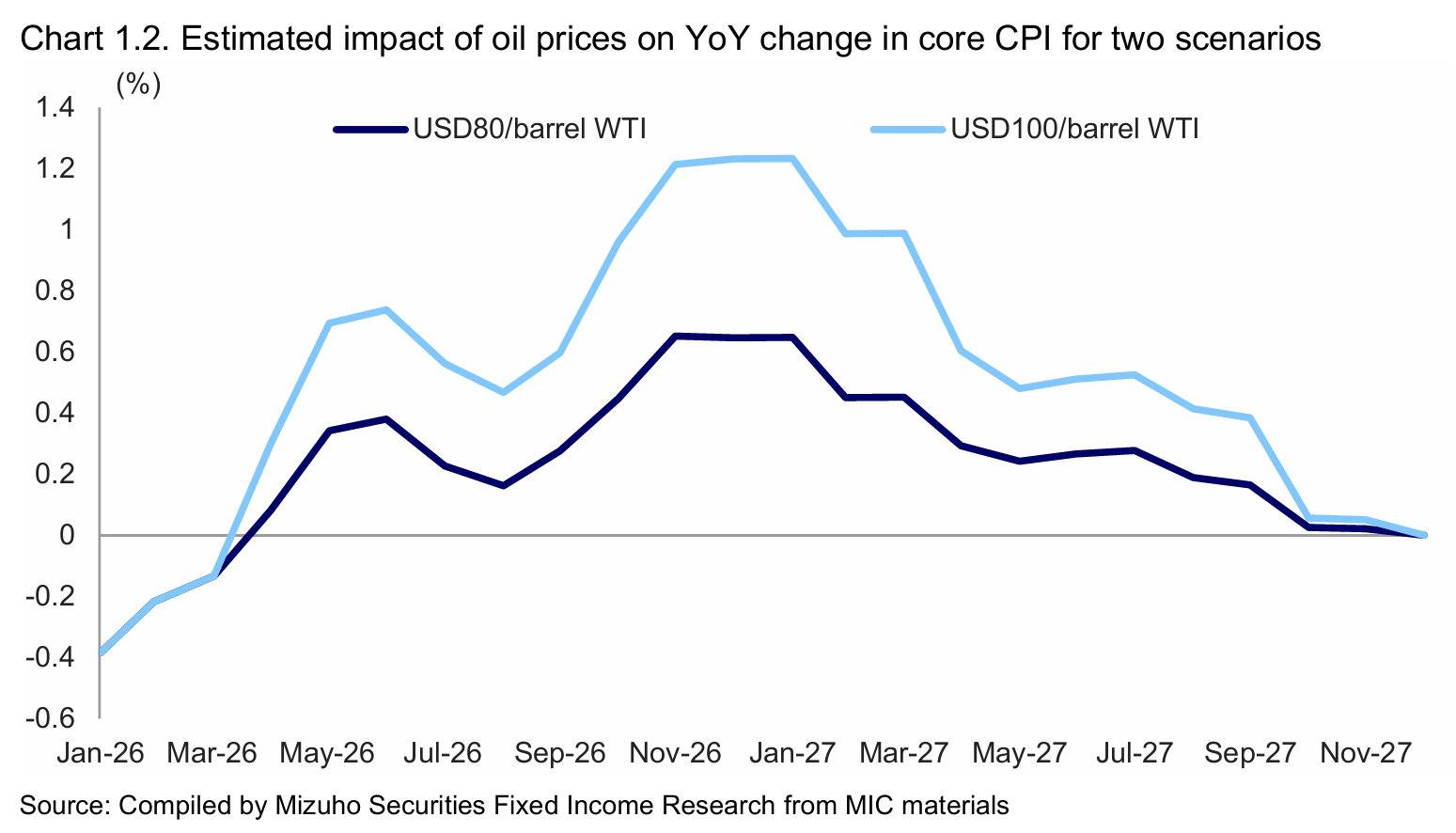 I’ve avoided commenting too much on inflation forecasts from the effect of skyrocketing oil prices because it’s slow and not the dominant effect moving markets right now. The above gives an idea to the hit on core CPI in Japan given different scenarios. A declining Yen will only exacerbate this.