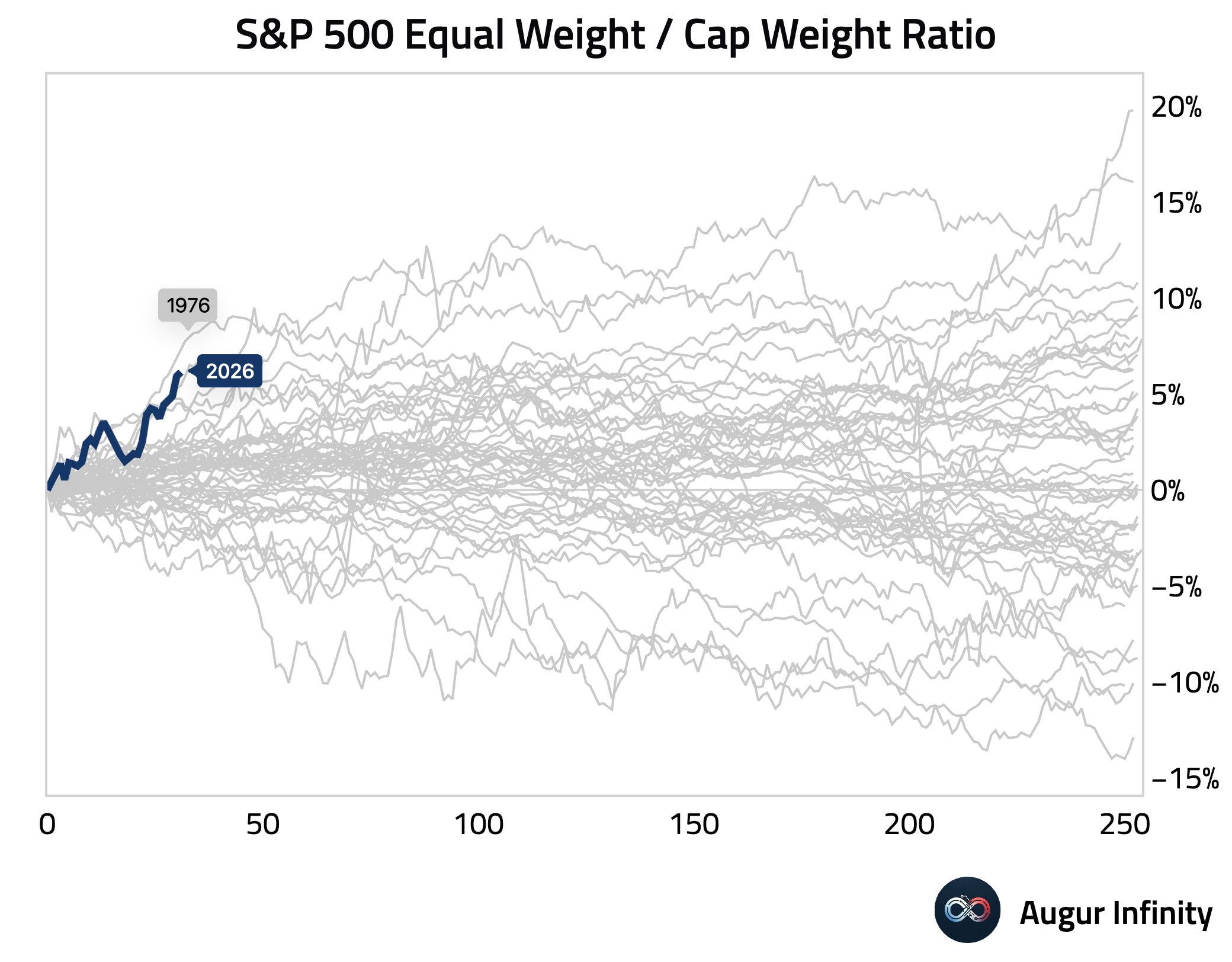 However, removing the effect of megacap tech changes the picture of relative performance considerably!