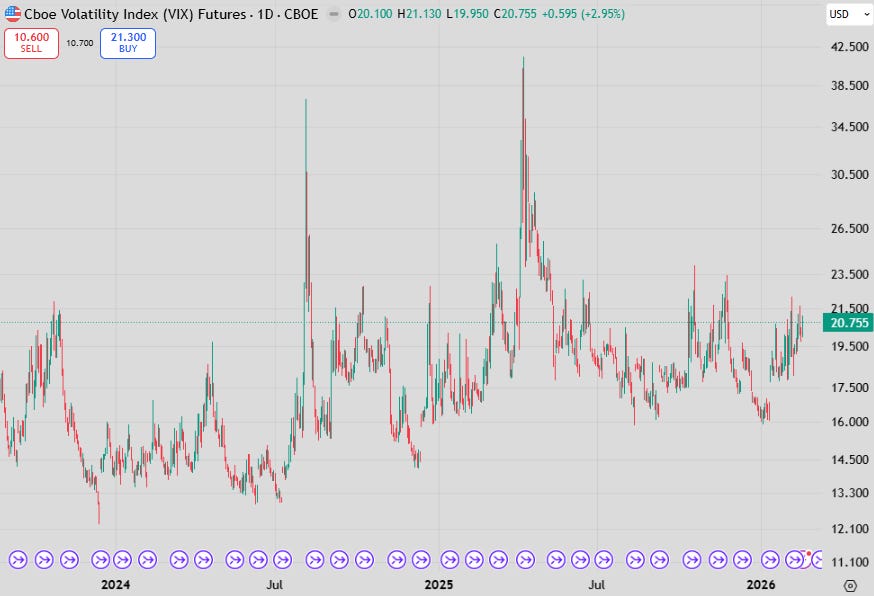 Vol remains elevated and probably will until the SCOTUS decision on tariffs comes through. It is meant to be soon but is unlikely to come out until after the State of the Union address next week to avoid giving Trump the stage to comment on it.