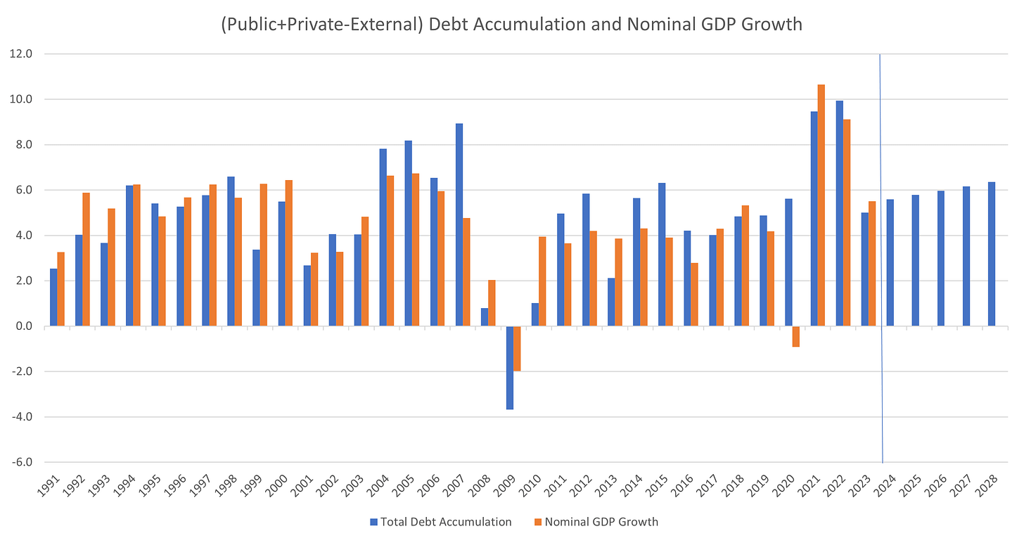 My last newsletter drew out the linkages between domestic debt accumulation and GDP growth. It’s time to put those conclusions to the test.